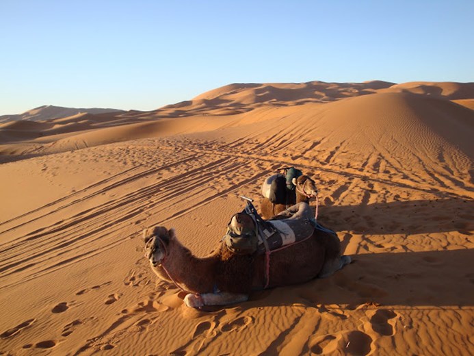 Arrive later on to this vast desert, With a backdrop of the orange-coloured Erg Chebbi sand dunes, the charming Saharan village of Merzouga feels wonderfully isolated, like the modern world has left it behind. The Erg Chebbi dunes are the most stunning in the country and an essential part of any visit to Morocco. An erg is a vast sea of shifting wind-swept sand that's formed into picturesque, undulating crests and valleys. You will ride camels / or a 4*4 into the edge of the Sahara Desert, enjoying a spectacular sunset along the way.